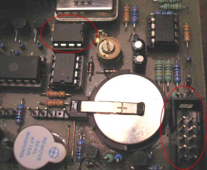 Szerintem sem érdemes kihagyni egy ilyen egyszerű eszközt, (PCF8583P, 32768KHz kvarc, néhány dióda, ellenállás, trimmerkondi, mindez lehet SMD-ben is, és egy legendás 2032-es 3V-os telep), ennek nagyon kevés az össz. helyigénye, de e nélkül ma már egy kalap "bógyi szilvát" sem ér az egész összeállítás. Az áramkimaradás, lemerülő akku, stb. örökös"nyűgös" gondokat okozna, (itt olvasom a topicban sok-sok helyen leírva). Egy kép működő Wand áramköri részletről, ahol az RTC milyen jól megfér a teleppel, és az RS232-vel együtt.