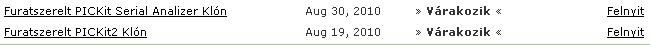 Augusztus 19.-én feltöltöttem a cikket a furatszerelt PICKit2-ről, amiben az EEPromok dip tokosak (cserélgethetők), és egy "emelet" is beépíthető tüskesorral... Eddig még nem jelent meg. A furatszerelt PICkit soros analizátor is várakozik..