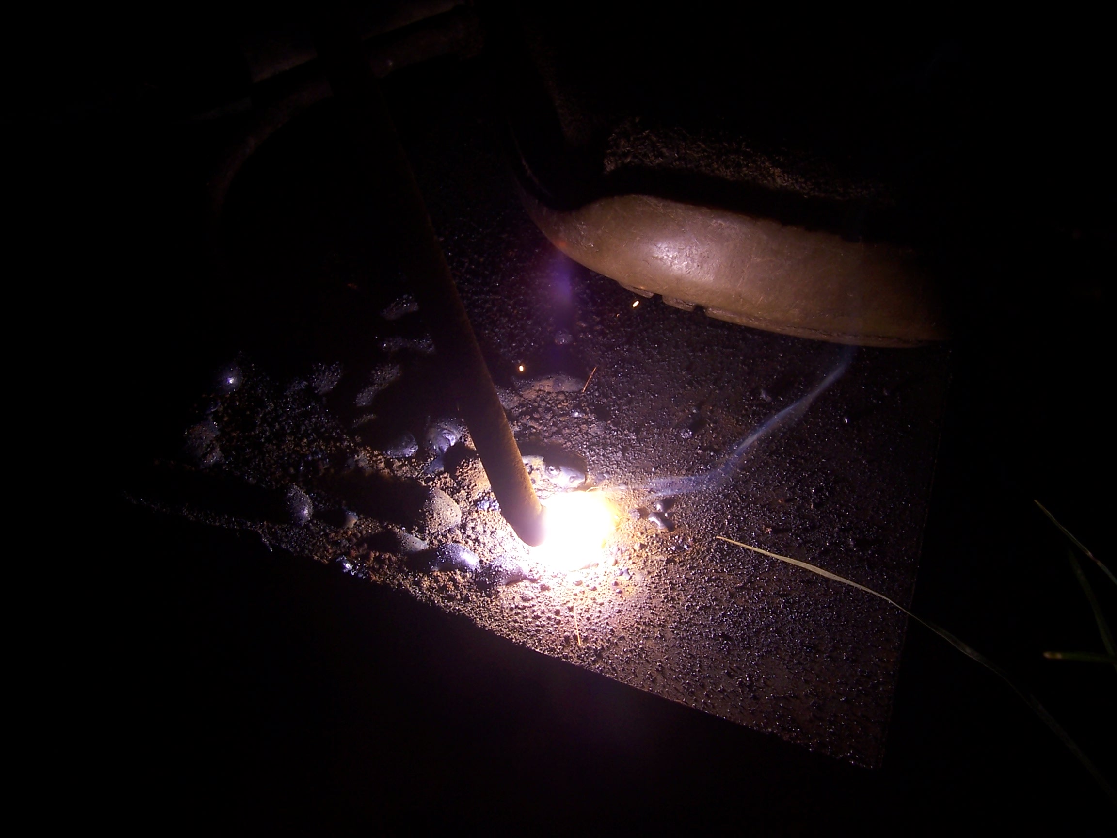 Minden pálcával ezt produkálja. A különbség az, hogy a vékonyabb pálca gyorsabban elfogy, de a munkadarabot egyikkel sem olvasztja meg, csak rácsöpög az olvadt pálca. A képeken ha jól emlékszem, épp egy 3,2-es pálcával próbálkoztunk.