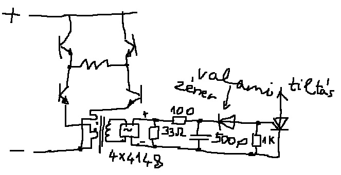 Ami előtte van dióda gondolom valamiféle zener, (magasabb nyitófeszt mértem). |