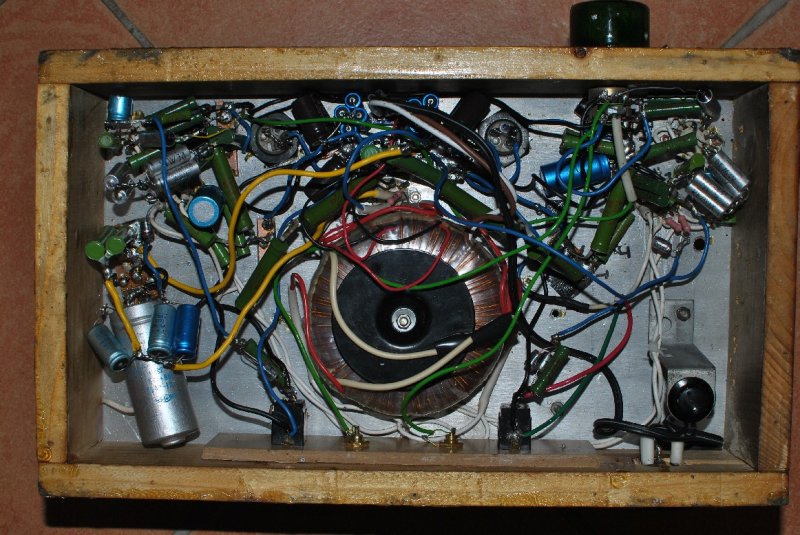 Közben az EL84SE-ben is változattam a segédrács feszkó hidegítésen. Nem egy 47 mikros kondi hanem több kicsi van ott oldalanként: 4x2,2mikro + (47mirko/2 (soros200V osok)) + 4,7 mikro + 10 mikro , és hatalmasat változott...igaz az egész táp összes kondit kicseréltem. Mivel volt két lyuk szerelőlapon a varázsszemeknek, amik nem lesznek bent, pont befért oda két kondér ami200+100+50 mirko csatornánként anódfeszre, aztán jött a segédrács higdegítő elkó csere...És a tápcső után is cseréltem. EZ 80(81) után 30 mikro majd sorosR majd 200mikro...az eddigi 47 R 47 helyett... Mintha kevésbé lenne meleg (túlmelegedett suta bársonyosság eltűnt és részletek jöttek elő helyette.) Mérési paraméterei tök ugyanazok! És teljesen más hangkép. A kivezérlést mindjárm megmérem, és mintha ez az erősítő is alul vágna, mérési hibára gyanakszom...megnézem a szkópzsinegeket...lehet nem 10 es osztón volt, és a föld és a szkóp föld dolog zavart be? hm...megmérem. pill.