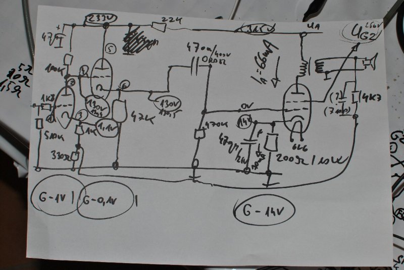 Akkor a katódkövető katódjában a 47k Ohm ot növelni kell ha jól sejtem, vagy az első trióda 100kOhm os anódköri munkaellenállását növeljem? de akkor csak követi a második, azaz inkább a katódkövető 47k növelésre tippelek...de keveset aludtam, iszom egy sert-és csinálom tovább.