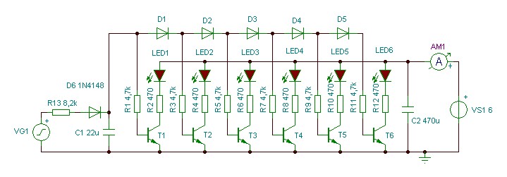 "Tekintve, hogy a hangfreki váltó feszültség és a kijelző előtt nincs egyenirányító, így a kijelző a váltófeszültség félperiódusát mutatja (követi). Mivel a feszültség nulláról indul a csúcsértékéig, közben átsöpör az egész köztes feszültségen. A pont kijelzés, meg követi. Ezért gyakorlatilag ugyan azt látod, mint az oszlop kijelzésnél, csak kevesebb fényerővel. Mert miközben a feszültség áthalad egy adott Led jelzési tartományán, a Led csak ezen idő alatt világít. (míg a feszültség a két egymás melletti két Led kapcsolási tartományban van) Ellentétben, az oszlop kijelzéssel, ahol a Led addig világít, míg a jel pillanatnyi feszültsége magasabb mint a Led (műveleti erősítő) komparálási szintje. Ez viszont sokkal tovább tart. üdv! proli007,, Valaki tudna nekem segíteni, hogy hova értette, hogy diódákat kell tenni? Mellékeltem kijelző és a vezérlő kapcsolási rajzát. Segítséget előre is köszi!