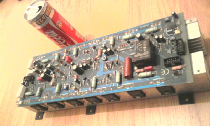 Amúgy 14 darab MJL21193/94 páros van benne. Dupla oldalas nyákon, Ventilátor áramkör/LED, koppanásgátló, hibajelző LED, power LED, csúcsindikátor LED, védelmek pl hő, kevés fesz. nem kapcsol be, rövidzárlat. Van rajta "RESET" gomb értelmét nem látom.... Mindegy. Vannak rajta potik a nyugalmi áram és a ventilátor szabályozás végett.