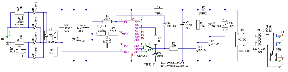 Annyit kellene tudnia, megkapja a feszültséget innentől elkezd számolni és beállítástól (1-30 másodperc) függően kikapcsol. Gondolom a kapcsolót simán ki lehet hagyni, és a végén a lámpát?