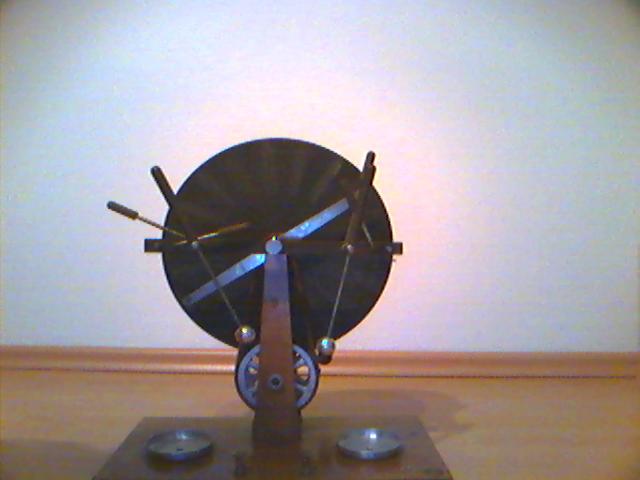Tévedsz, ez egy Wimshurst generátor, a Van der Graaf generátorban egy szalag viszi a töltéseket egy magasan elhelyezett gömbbe. A cél persze ugyanaz, statikus nagyfeszültség előállítása. A képeken nem látszik, a két leydeni palack ami kondenzátorként működik, hiányzik róla.