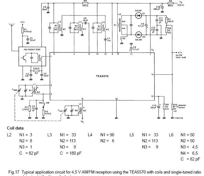 Kimostam a hazat, szo szerint. TEA5570 es IC van benne, diodas detektorral es soros kf szurovel. Az elejeben ket tranyo van, a bemeneten nyakra gyartott szimmetrizalo transzformator van. Ezustozott tekercsek vannak benne. Kihamoztam az AFC-t , az oszci frekije konnyen valtoztathatonak tunik. Nem cseplem tovabb az etert, lefenykepezem holnap.