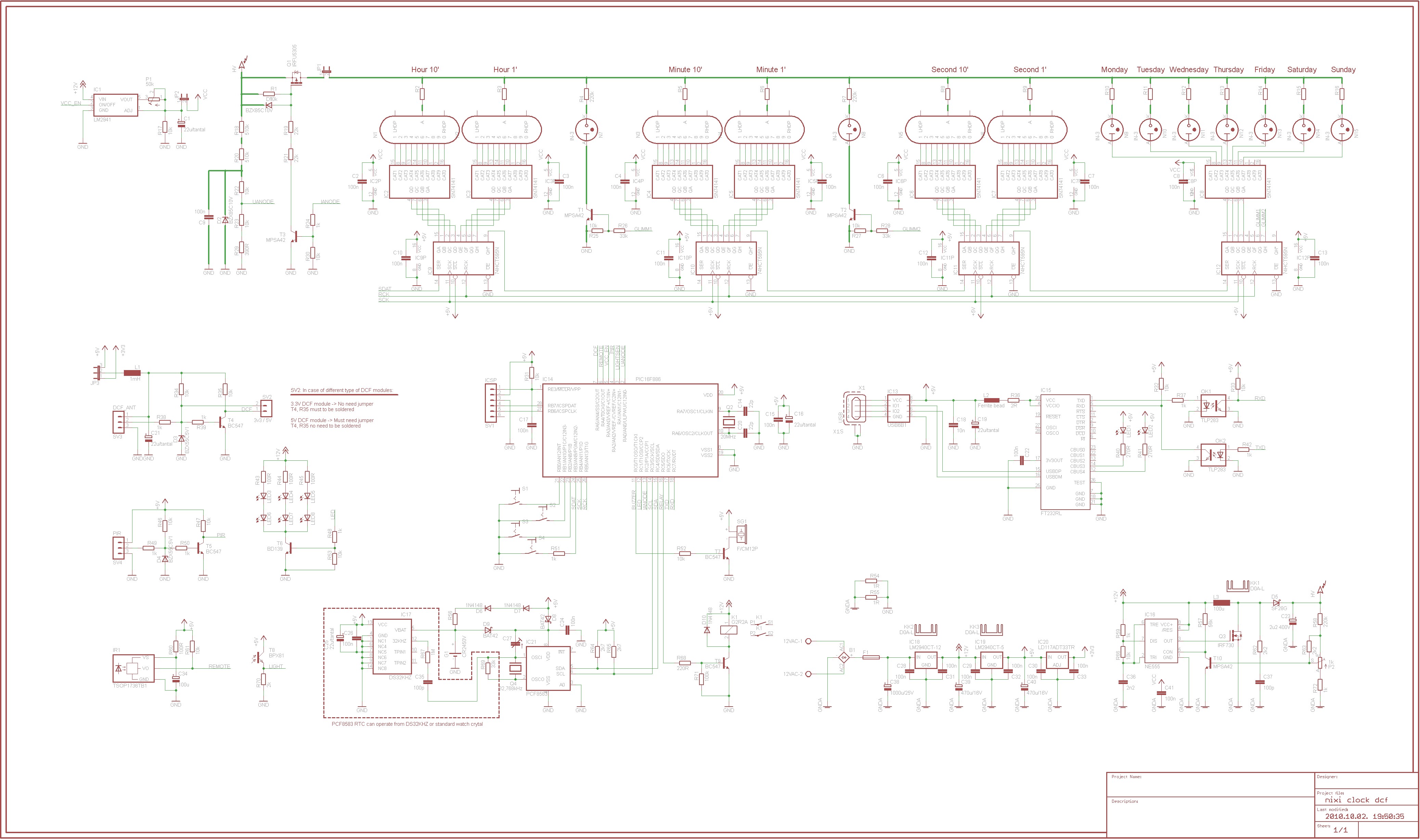 A tervezésnek nekikezdtem, elég furcsán jönnek ki a lábkiosztások a shift regisztereknél: nálam a nyákon lerajzolva, sorban így jönnek a digitek: H1, H10, M1, M10, S1, S10. Engem nem különösebben zavar, de könnyen bele lehet kavarodni, ha az ember majd csak rutinszerűen rakná össze az órát. Javaslom, ha még nem késő, a shift regiszterek kimeneteit kicsit megváltoztatni (csak az első IC-re írom le):