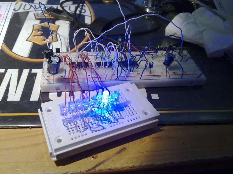 Az úgy működne, hogyha csinálnék egy 10LED-es futófényt és 5ledet párhuzamba kötnék és igy 1LED helyett akkor 5 menne egyszerre és tranyó kapcsolná őket?