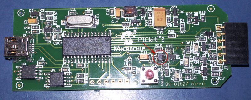 Őszintén szólva csak az járt a fejemben a rajzoláskor, hogy a kimeneti szintmegfogók és a Vpp pumpa is a beállított tápfeszültséggel szinkronban működjenek, mert ez szükséges a komolyabb PIC családok (PIC24, dsPIC) megszólításakor. A külsőleg az áramkörre adott tápfeszültség lehetősége teljesen elkerülte a figyelmemet.
