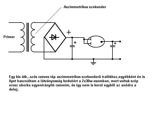 Egyébként rajzoltam egy kis okosságot neked, hogy megkönnyítsem az erősítőépítésedet. Látványtáp aszimmetrikus trafóhoz.