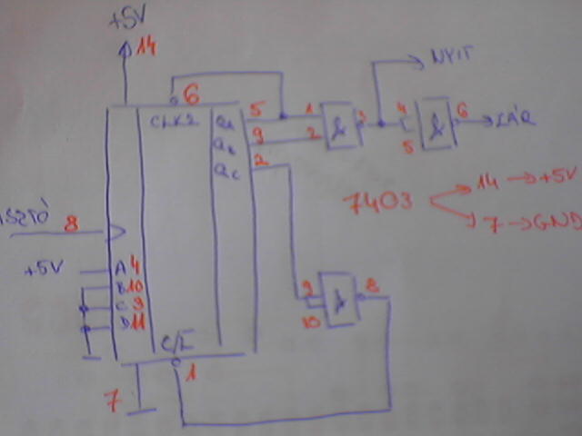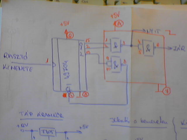 Na lerajzoltam az én elképzelésem, de sajnos csak mobillal tudtam lefényképezni neked. A nandkapu IC sn7403 (erre vonatkoznak a piros számok (lábak)) Bocsi elrontottam a számlálót !!
