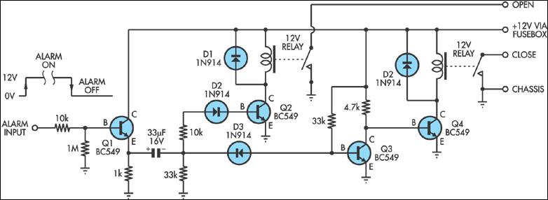 Egyébként csináltam én is ilyen bekapcsolástól kikapcsolásig folytonos jelből nyitó/záró impulzust előállító kütyüt, hasonló volt ehhez. Valahol már kérte valaki egy fórumon, megpróbálom előkeríteni... Az általad linkeltről elöljáróban annyit, hogy ha a riasztó bekacsolt állapotban folytonos 12V-ot ad ki, akkor a rajzon a nyitó (open) és záró (close) kimenet fel van cserélve. Most, hogy jobban megnézem, elég érdekes ez a kapcsolás... Üdv Inhouse Idézet: „Most, hogy jobban megnézem, elég érdekes ez a kapcsolás...” angol szöveg körítés van hozzá megkeresem.. meg is van: Central Locking Interface Some cheap car alarms do not have a connection for the central locking system. However, in most it should be possible to find a point in the alarm circuit which is high when the alarm is activated and low when it is off. This signal can then be used to drive this relay circuit to operate the central locking system. The interface circuit converts each toggle of the alarm signal to a brief pulse to operate the two relays which then are then connected in parallel with appropriate contacts on the master solenoid in the central locking system. Frank Keller, via email. ($40) forrása meg itt, közép tájt