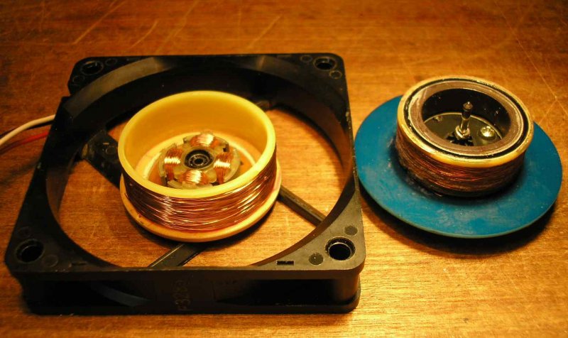 Nem panaszkodok a hatásfokra. Most egy 9V-os DC tápról megy csak a motort kellet feltekerni rajt mert az lassabban ment mint a 12V-os DC-vel.. A hűtő szinte hideg nincsenek nagyobb veszteségek.Az elkészítése egy ilyen tekercsnek a következő: én egy 40mm-es átmérővel rendelkező vízvezeték lefolyócsőből készítettem egy sablont.. Levágsz egy kb 5-8 centis darabot majd hosszában befűrészeled egy kb 1mm-es fűrésszel. Ha kész szépen lepolírozod a keletkezett sorját szép sima legyen minden. Egy darab nyákot vágsz mi belemegy a befűrészelt részbe és beleteszed. Tekersz egy darab papírt a csőre és erre szépen nekiállsz tekerni. Finoman kell rögzíteni néha a tekercset pillanatragasztóval egymáshoz úgy,hogy a papírhoz lehetőleg ne ragadjon oda. Ha kész a tekercselés szépen kiveszed a nyákdarabot a befűrészelt résből és össze lehet anyit nyomni,hogy lecsúszik a tekercs a papírral együtt. Ha óvatos voltál a papír sem ragad rá . Ezután hígított nitro vagy hasonló lakkal lekened azt kész.. A végleges tervben nem "önhordó" lesz a tekercs bár ez is jó megoldás hanem egy kis nyákból kialakított tartóra lesz ráragasztva mi a csavarokra passzol a ventiben melyek a fetet meg a motormeghajtót fogja és két kis tüskével csatlakozik bele a helyére. ez a terv készen is van teljesen és ugyanezekkel a méretekkel készül egy 16F690-es verzió is mi ugyancsak belemegy a ventibe (most már merem tervezni komolyabban,hogy nem zavarja a tekercs). Nagyobb frekinél félek megzavarná a kontrollert.. Azonban van a 886-os bázisra (mit most kiselejteztem a hatalmas mérete miatt tesztbázisnak) egy olyan belevaló miben lehet állítani a frekit.Na majd azzal tesztelem még ezt a spirális trafót