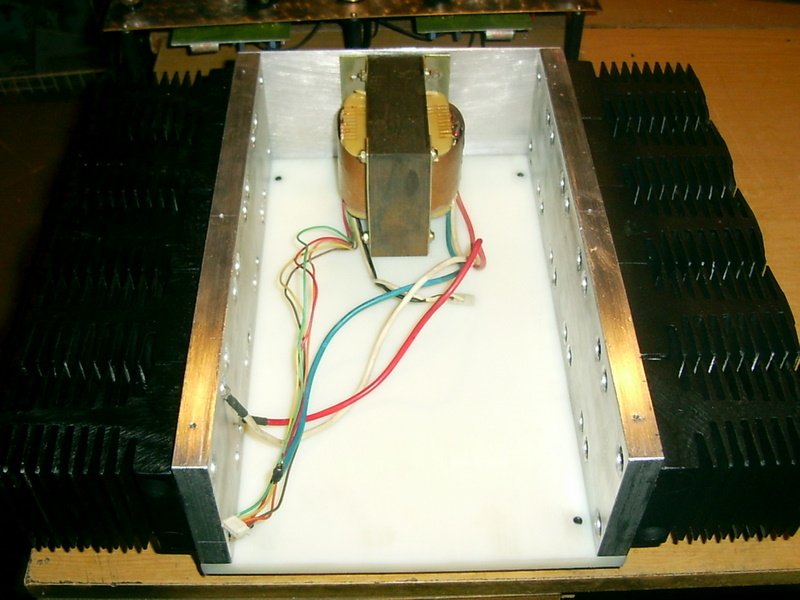 Én is úgy gondoltam hogy külön hűtőbordara szerelem fel az alimentálást ellátó tranyót, az a két nagy esztergált hűtőborda fogja hűteni az alimentálási tranyót kűlön kűlön a sztereó oldalaknak. Ventilátort nem szándékozok bele tenni, túl zajosak számomra, de szerintem ekkora hűtőfelületnél nem lesz rá szűkségem.