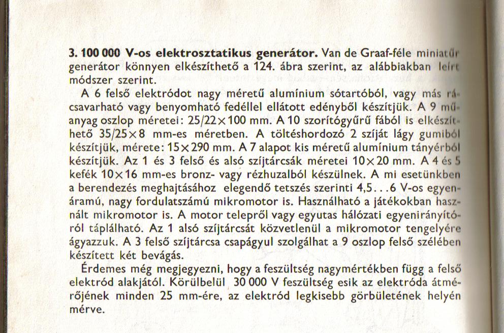 Én építettem egy nagyon egyszerű Van de Graaf generátort, mindössze egy papír, tengely, kondenzátor egy motor és egy PVC cső segítségével. A PVC csőbe beillesztettem a tengelyt, rá a motort. Ettől az a papíron surlódott, amit egy drót gyűjtött össze, majd a kondenzátorba vezette.