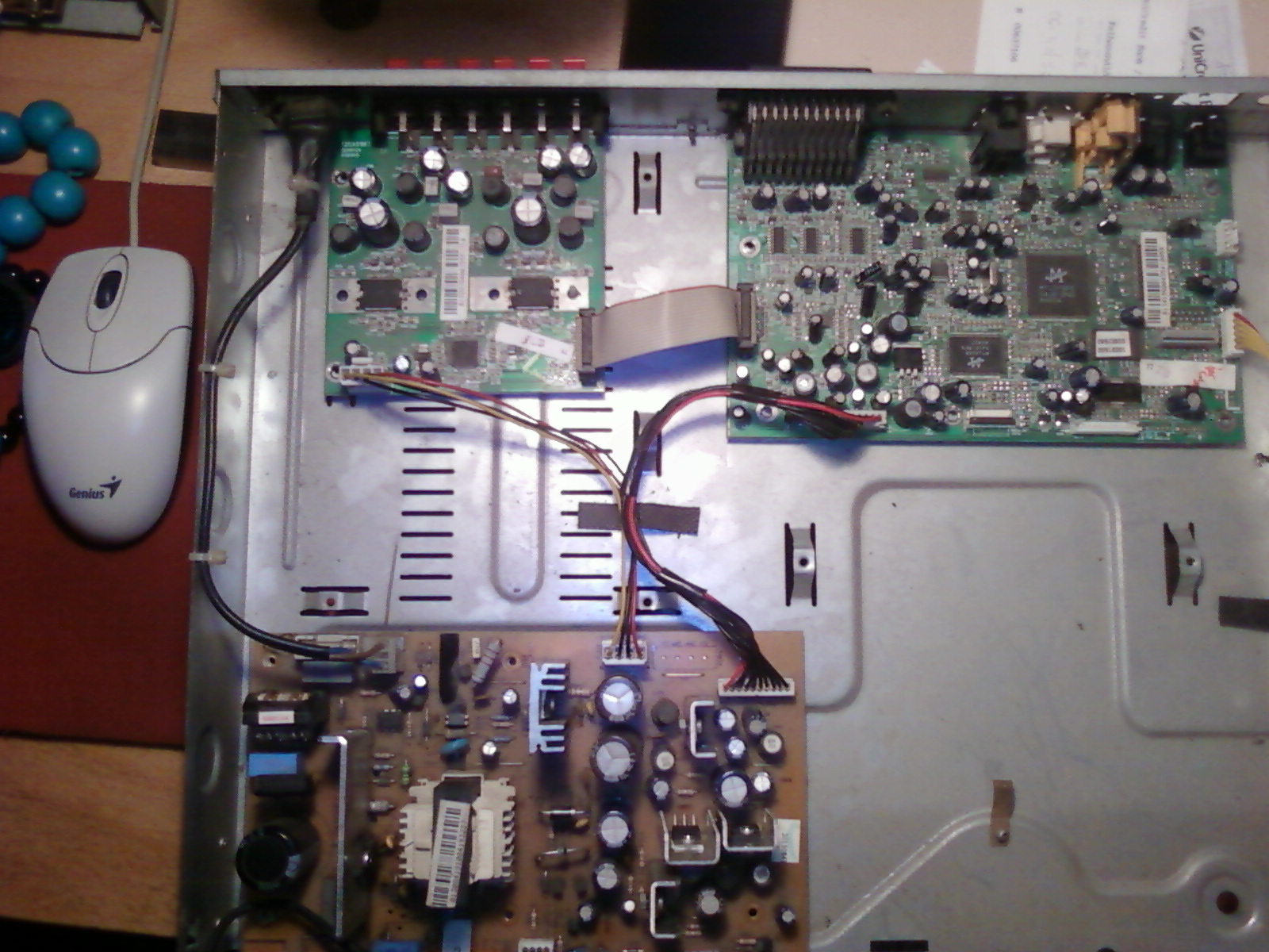 Egyébként lehet, hogy ha lekapod róla azt a szalag kábelt, akkor még működni fog az erősítő, meg a kijelző is (ha nem a másik panelra van kötve). De felelősséget nem vállalok érte.