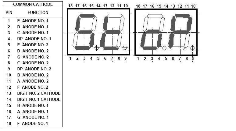 Így kicsit jobb, a 2 egyformával ki lehet írni azt a kisbetűs StoP feliratot. Sajnos a típuszámra nem találtam semmit, de a 8 láb kevésnek tünik nekem 7 szegmens + 2db tizedespont + 2 közös anód/katód, az legalább 9 láb és ezt csak multiplexelni lehet, mert a 2 kijelzőn ugyan az jelenik meg, ha össze vannak kötve benne páronként a szegmensek. Ki kellene mérni, melyik láb mit csinál. Fontos, hogy ne köss a lábaira elemet annélkül, hogy egy 270-470 ohmos előtétellenállást ne lenne az áramkörben. úgy ki lehet próbálgatással találni, melyik láb mit csinál. Esetleg egy fotó elölről hátulról segítene.
