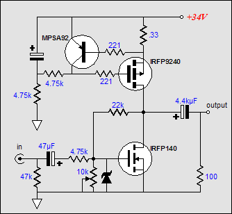 ITT van pl. egyetlen kettos triodaval megvalositott SRPP kapcsolas. Egy probat meger az IC helyere...