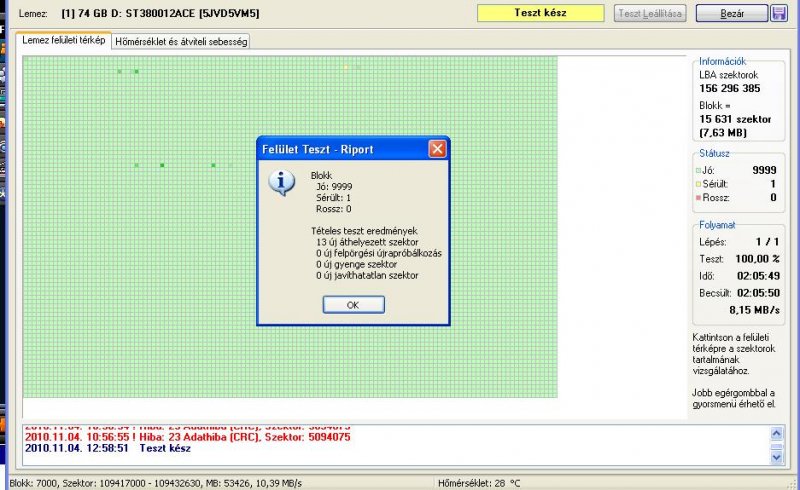 Szereztem egy 80gb os seagate vinyót amelyet nem lehetett formázni.A hard disk sentinel írás tesztje talált rajta 23 hibás szektort és amikor végzett már lehetett formázni. Szerintetek mennyire biztonságos még ez a vinyó? Az áthelyezett szektorok száma sajnos tegnap óta csak nől.