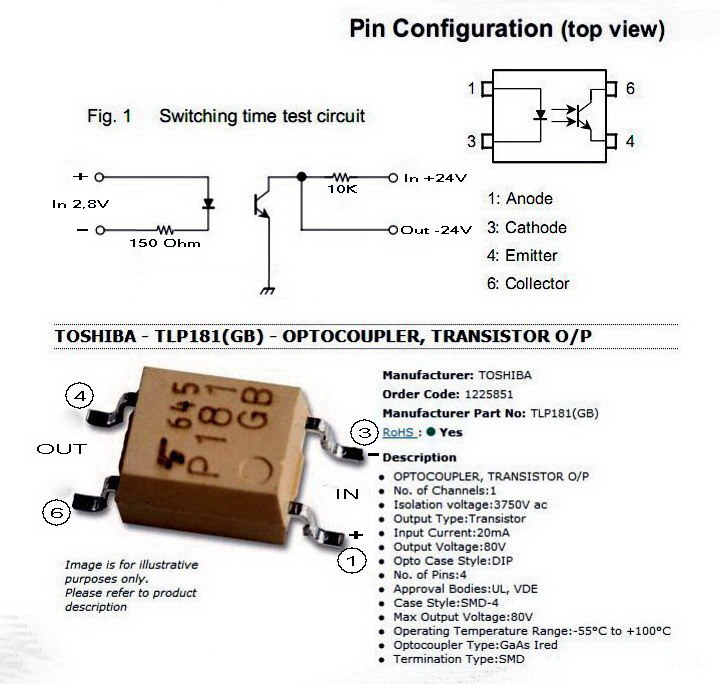 Ezzel kellene kapcsolni egy OPTO-t, kimeneten szintén alacsony, +24V 5-10mA lenne ez adná a jelet a vezérlésnek. Mindezt SMD OPTO-val, próbálkoztam a gyári PDF leíráás szerint, de egyenlőre nem indul be.