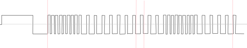 Úgy nézem a hosszú szünetes jelből van összesen 16 db a bevezető rövid tüskék állandóak ,a kódot a második rövid (szintén 8-as ) sorozatnak a helye hordozza.