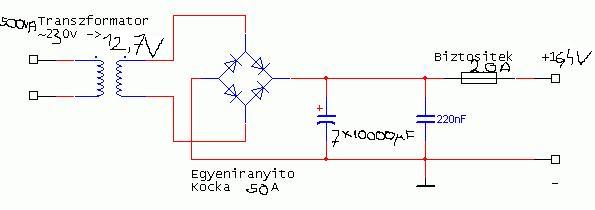Amit linkeltem kapcsolás az kész csak a kimenet lett 2 volttal több mint kellene és nem tudom hogy lehetne megoldani. A trafó adott 500VA 230V/12,7V.