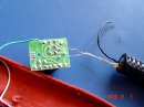 A nyákon van egy ferritmagos trafó az oszcillátorhoz, a nagy fekete alkatrész az osztott tekercstestes nagyfesztrafó, a pár menetes lakkszigetelésű prímer vezeték a kb. 5 mm-es átmérőjű ferritrúd magra van tekerve, és az így van a tekercstestbe bedugva, egy rögzítő gumiszalaggal.