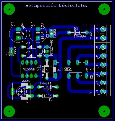 Sziasztok! Tudnátok-e kapcsolási rajzot adni egy időzítőről, ami +12 volton kb 5-10 sec-on belül bekapcsol és úgy is marad, míg a tápfesz rajta van. Relét üzemeltetne.
