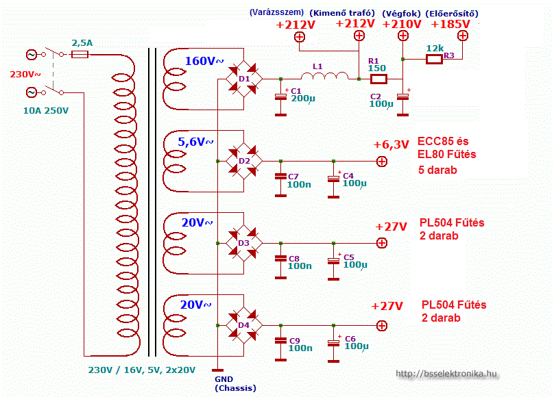 Abban én úgy kerültem meg a problémát, hogy segéd trafó, a segédrács , és kiscsöveknek a tápfesz elátás. Nagyon bejött.