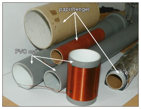 A csévetestek egy része PVC lefolyó cső, 40 és 50mm átmérőjű. Ezekből lehet kapni rövidebb (idomokat) ill.darabokat. A másik része vastag falú papír csőből készül, ilyen pld. ipari papír kéztölő csévéje, ez nálam 75mm átmérőjű vagy vékonyabb a háztartási alufólia csééje 28mm átm. Ezek vagy ehhez hasonló anyagok a háztartásban, vagy munkahelyen hulladékként megtalálhatók. A papír csévetesteket valamilyen fapáccal lekenem, szükségszerint finom csiszolópapírral pld. lakkpapírral átcsiszolom, majd 2 soron sellakkal átkenem. A második lakkréteg előtt még lehet szálkamentesiteni egy kis csiszolással.Száradás után a papír megkeményedik és egy kicsit hasonlítani fog a bakelithez. Fapáchoz kisebb menyiségben is hozzá lehet jutni, por vagy oldat formályában. Ezekből az anyagokból ha megmarad valamennyi, hasznosítani tudjuk amatőr munkánk egyéb részein is, pld dobozolásnál, csévén a menetek rögzítésére, stb. Amire munkánk során szükség lehet: lombfűrész, tapétázó kés, csiszolópapír, lakk. Még egy kis segédlet a mellékletben.