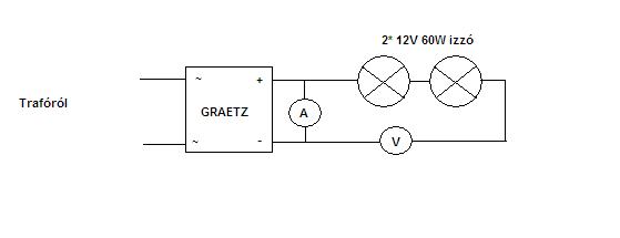 Alkotó. Azért tettem be Graetz hidat mert a műszerem váltóáram erősséget nem mér.