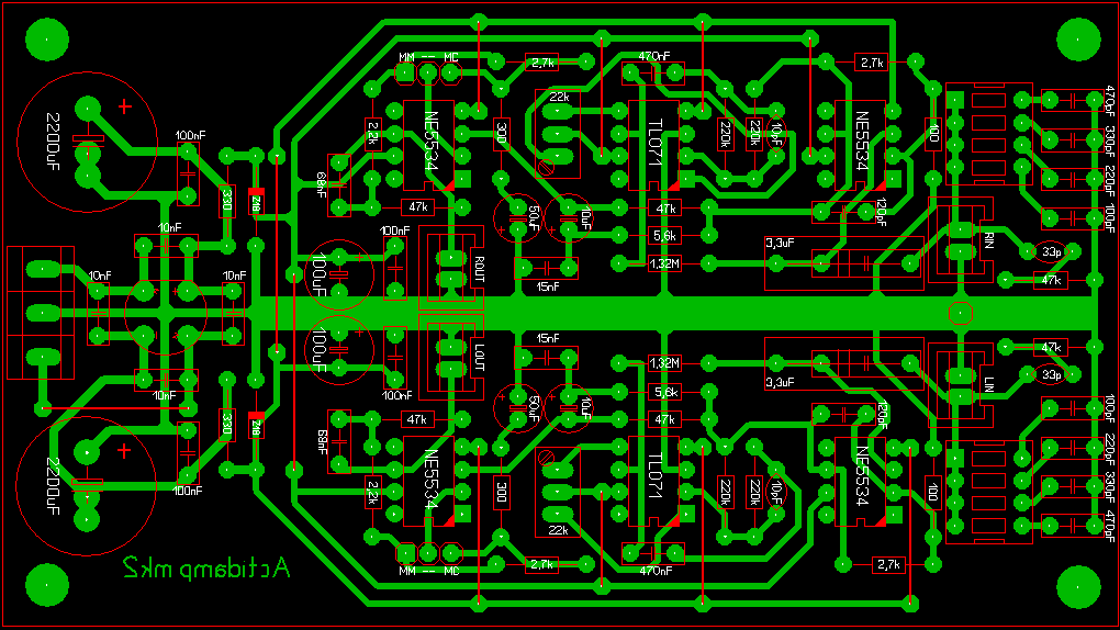 Egy jó minőségű,DC-csatolt korektor,6darab műveleti erősítővel/oldal. Én ennek egy egyszerűbb változatát hallottam már szólni,mondhatni kisöccse.(ActidAmp Mk II)