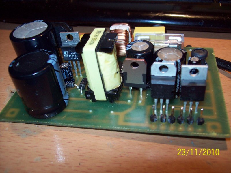 Szeretném veletek is megosztani a 10w-os kapcsoló üzemű tápegységem.Kicsit minden túl méretezett mert sok minden volt itthon pl a primer kondik cserére kerülnek kisebbre. ÉS a szekunder oldalon is kicsit nagyobb a puffer de mivel ez nem "gáz" így az marad csak egy 105°C kicserélve az összes kondi.