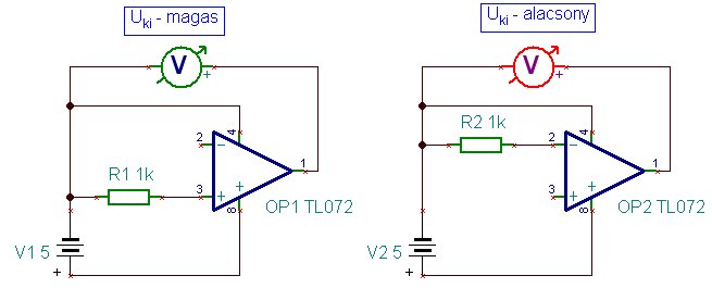 UkiH = (UT=5V - 1V) - 0.6V = 3.4V. ( GND-hez mérve. ) VkiL = (Ut = 0V ( egy tápfeszültségről van az áramkör táplálva ) + 1V) + 0.6V = 1.6V ( +UT-hez képest mérve 3.4V) Ha jól számoltam akkor 3.4V marad a LED-eknek 5V-ot tápfeszültség esetén. ( Az 5V os tápfeszültség a +-2.5V -os táplálásnak felelne meg! ) Ha emeled a tápfeszültséget megszűnik a leragadás?