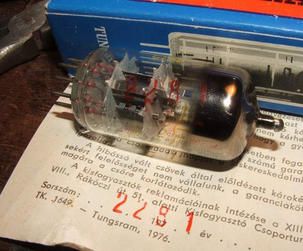 Egy Tungsram cső valószínűleg akkor nem használt, ha meg van a doboza, benne a csővel egyező sorszámot tartalmazó garijeggyel.