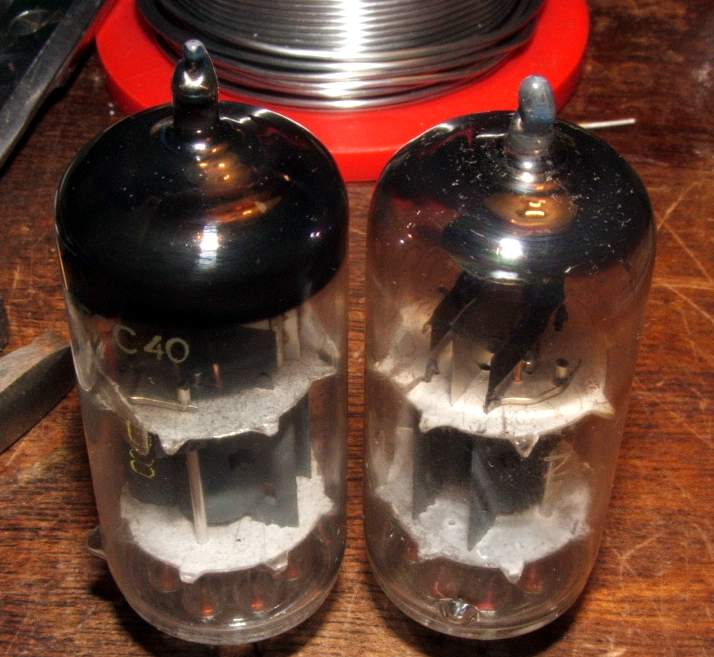 A képen jól látszik hogy a jobb oldali cső már nem túl erős getter kérdésében.