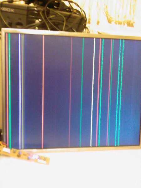 Meghajtottam az LCD panelt a másik teljes elektronikával, melynek eredménye a képen. Holnap kipróbálom a " nedves ujjas" hibakeresést, mert a látottak alapján arra következtetek, hogy a logikai panel felől kap olyan jelet, ami miatt a folyadék kristályok nem teljesen zártak a"fekete" utasításra. Lehet, hogy a mellékelt képen nem látszik, de a próba elektronikával NINCS rozsdabarna-fekete pixel csík. A PC bekapcsolására reagált a monitor, majd a képen látható csíkokon kívül mást nem mutatott.Így remélem, nem károsodott a kísérlettől, de ez holnap kiderül. Az eredményről majd beszámolok, de ha esetleg a képek és a leírtak alapján van más ötleted, szívesen fogadom.