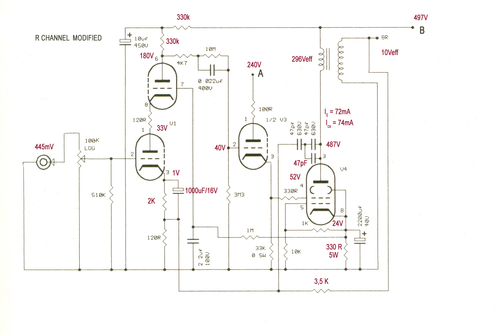 Jelen pillanatban egy APX 100 újraépítésének végénél járok. Van egy részlet, ami viszont nem tiszta és ez inkább általános kérdés az előfeszültség bekötésével kapcsolatban. Azt kérdezném, hogy a rajz szerint kötve jó lesz-e? Mármint a PP-k esetében a rajzokon úgy látom, hogy a két rács ohmikus kapcsolatban van. Építettem már SE erősítőt. Most úgy kötöttem be, mint az SE-kben, teljesen külön van a két csőnek előfeszültsége, melyeket egy-egy 200Kohmos ellenálláson keresztül vezetek a csatolókondi és a rácsellenállás közös pontjára.