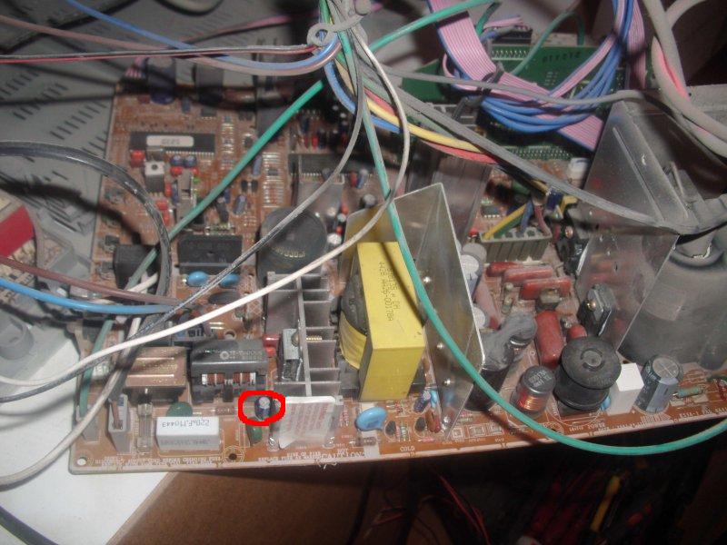 Ha jól kutattam,akkor EZ a rajz tartozik a gépedhez,ezesetben cseréld ki a TDA 8170 mellett a C421 220µF/35V kondit,illetve nézd meg a két nagyobbat is.