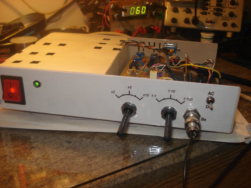 Na ujjabb tesztek már dobozolva. A zaj valamiért visszatért,de 50hz-re csökkent modjuk a táp is a dobozba került és nem nagyon akarom kivenni. Amúgy nem dolgozom kapcsolóüzemű táppal két db puskás féle trafórol hajtom. Az LF357-el az a baj,hogy kifutó széria és nem nagyon lehet kapni, mondjuk nekem még van itthon egy pár db.