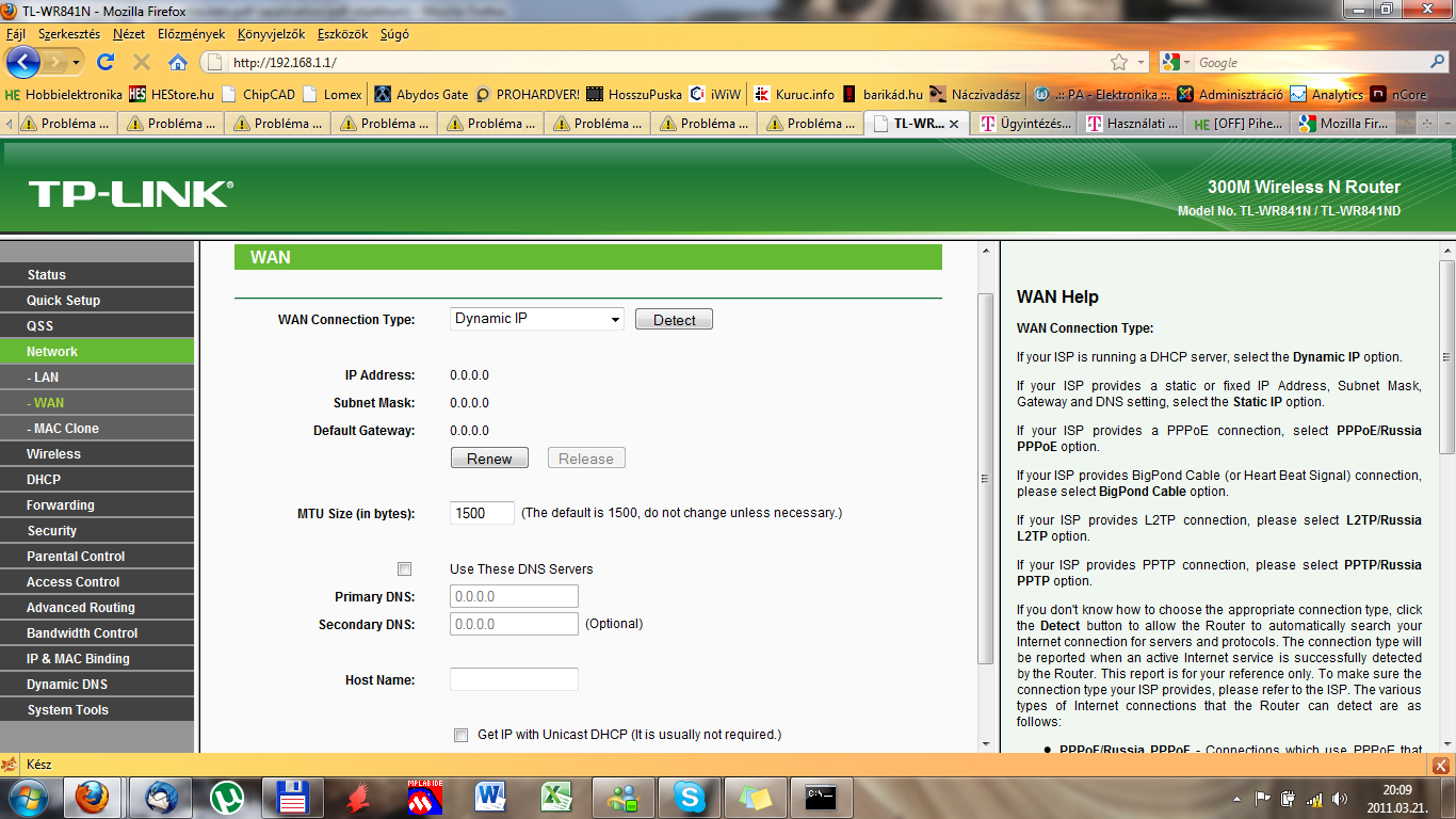 Klónoztam a MAC címet is, de akkor sem megy. De amúgy nem kellene másolni, mert ha a párom laptopjába dugom bele ezt a LAN kábelt, akkor azon is azonnal, szintén mindenféle tárcsázás meg jelszó nélkül van net.