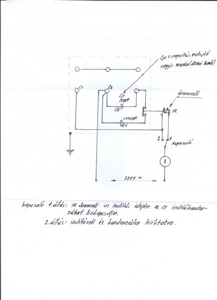 Adott egy régi orosz barkácsgép. A motorban 3 egyforma ellenállású tekercs. A dekniben található rajz alapján csillagba vannak kötve majd egy 120 mF-os kondival a harmadik tekercsvég bekötve. A gépen van egy 1-2 kapcsoló is amit nem értek. A gépet amikor szétkaptam volt még 2db 120-as kondi párhuzamosan kötve, de nem tudom hova, mert valaki már babrálta. Tudja valaki ennek a gépnek a bekötését?