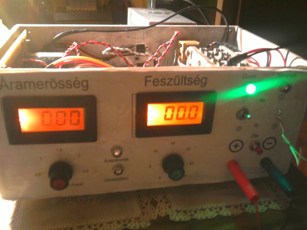 Na összeállt életem első labortápja. (V1.0) Végre úgy müködik ahogy kell. 0-30V 0-3Amper. Hővédelem ami lekapcsolja a kimenetet (DC-off kapcsolóval párhuzamosan) és bekapcsolja a hűtőventillátort. Igy nem terhelem feleslegesen a segédtápot, csak ha szükség van rá. A DC off kapcsoló és a visszajelző led még hiányzik, de nem volt itthon.