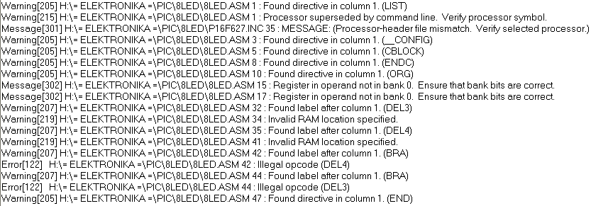 Még így is sok a hiba. A BRA-t nem kékkel írja. Lehet, hogy ezt a parancsot nem ismeri? Vagy csak ez a PIC nem támogatja?
