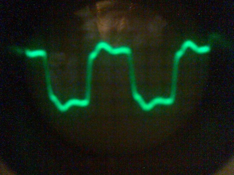 Kb. 30 mérésem volt a 6P3SZ-e-vel, mindenféle beállításban, katódkondival és anélkül, fix segédrácsfesszel, különböző Ua és Ug2 feszekkel, Ra-val. A legjobb jelalakok nem az AN gyári beállításban voltak, attól messzire jobb volt a szkópon az alábbi: