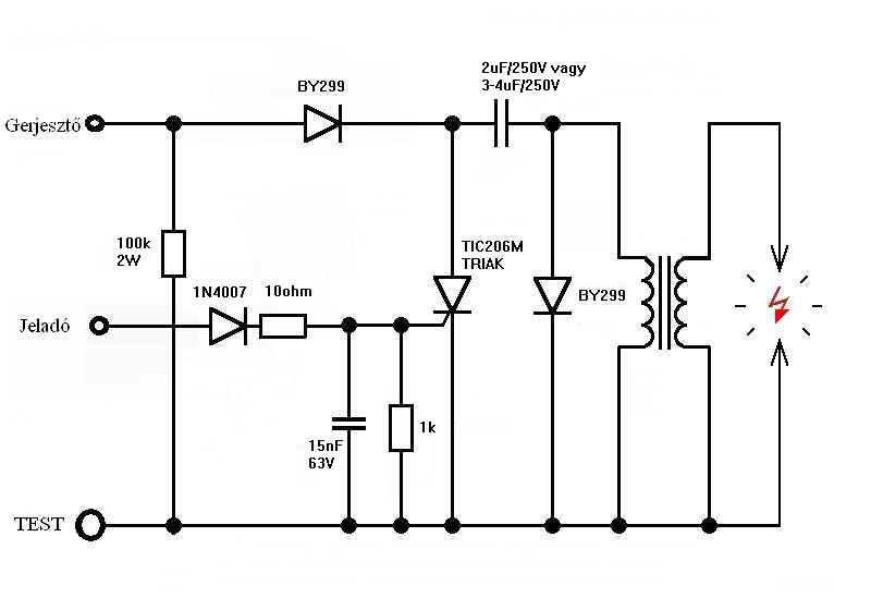 visznt ebből a tranzimóból még jópár alkatrész hiányzik... Kurtyka gyújtása sokkal jobb, szinte tönkreteketeklen ... (csak a nagyfesz gerjesztőtekercs mondhatja be az unalmast mert negatív félperiódusban cska a 100Kohm vezeti az áramot, és ettől a fesz megugorhat és átüthet de ez elég valószinűtlen...) csá ja trafónak az a jobb aminek kisebb a primer ellenállása én CDI trafómé 1,6 ohm körül van...