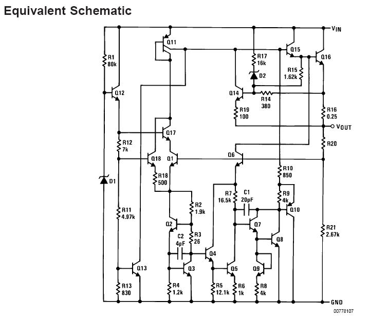 Idézet az LM340-LM78xx adatlapjából: Idézet: „Raising the Output Voltage above the Input Voltage: Since the output of the device does not sink current, forcing the output high can cause damage to internal low current paths in a manner similar to that just described in the “Shorting the Regulator Input” section.” Az Application Hints 1. ábráján még egy diódát is javasolnak arra az esetre, ha a bemeneten megszünne a feszültség. Vannak olyan adatlapok, amin a belső felépítés is látszik, a kapcsolást ide is melléklem. Ha a Vin ponton nincs meg a feszültség - és jelentős terhelés is van rajta (puffer kondenzátor, más áramkörök), akkor a pic programozóból származó áramra a Vin potenciálja továbbra is közel föld potenciál. A Q6 ki tud nyitni, a Q16 bázisát a feszültség osztó feszültsége alá (0.6V-tal) húzza. Q16 emitterén nem tud áram folyni, a bázis - emitter átmenet záróirányban a kimenetre jutó feszültség - az osztó feszültsége - 0.6V feszültségre lesz igénybevéve. Az R20 értéke a típustól és a referencia feszültségtől függ - ezek gyártó specifikusak lehetnek. Ugyanígy a gyártótól függ az is, hogy a kimeneti Q16 tranzisztor mekkora záróirányú bázis emitter feszültséget visel el károsodás nélkül. Lehet, hogy az 5V -os nem károsodik ilyen esetben, de erre ne tervezzünk...
