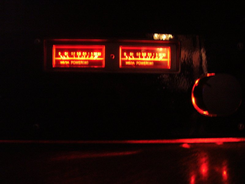 A háttérvilágitás piros. A kijelző pedig azért van ott, mert ez eredetileg is egy végfok doboza volt, ahol ott volt ez a kijelző, azért is hagytam ott. Szerintem egész jól sikerült, és a felirattal sikerült kitölteni a fennmaradó helyet!