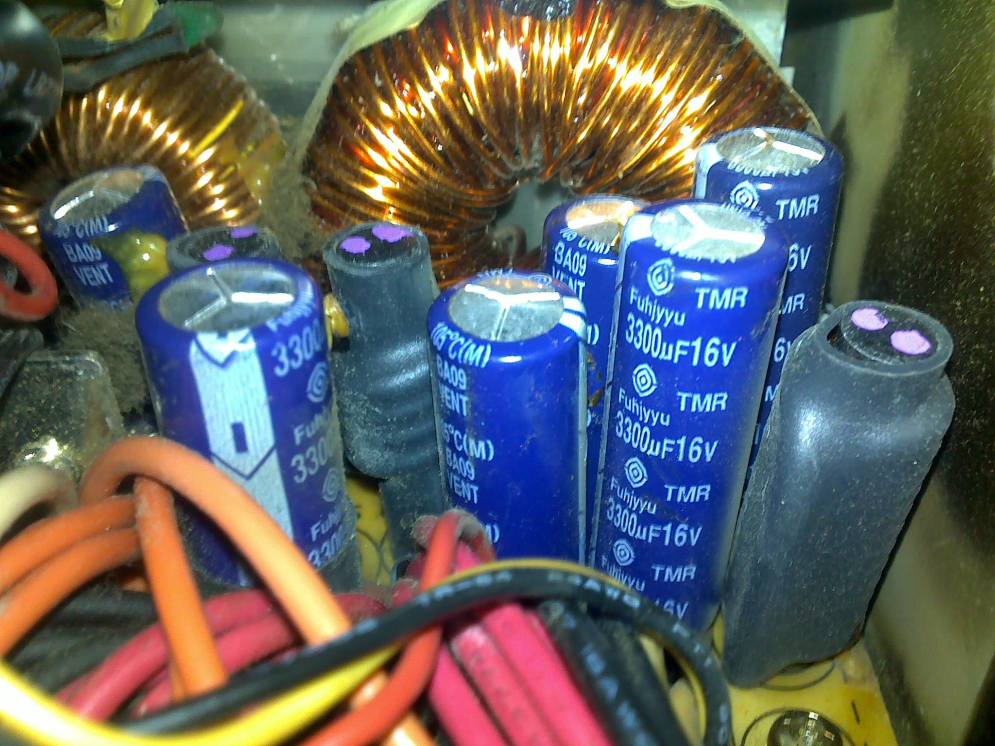 Már fel kotortam itthon mindent, amiből esetleg kitermelhető lenne, de nincs itt semmi. Alaplapokon szinte kivétel nélkül 3300µF-osak vannak, de mindegyik 6,3 és 10 V-os. 16V-os vagy nagyobb semmibe sincs. Vagy hagyjam benne azokat, amik eleve benne vannak!? Mert nem ez volt a fő hiba. 3 darab 16V-os van a tápban, ebből 1 púpos. A 10V-osak viszont mind púposak, de az van itthon. Ez a coolink túláram védett, de a ciripelő Q-Tec, ami most bent van, abban semmiféle védelem nincs. Valamit muszáj tennem.